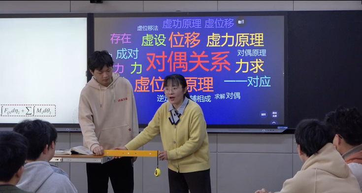 戴云彤老师一直从事本科生《结构力学》《建筑力学1》《工程力学B》《土木工程概论A(双语)》等课程的教学工作;同时也积极支持学校留学生教学工作,为第一届土木工程专业俄罗斯交换生讲授《Structural Mechanics》全英文课程;从2021年起,为每届土木工程硕士留学生讲授《Advanced Structural Mechanics》全英文课程。从五年前初上讲台时起,在工程力学教研室前辈老师们的教导下,她始终坚持备好课是讲好课的前提,每门课程都配备手写备课笔记,且每学期都会进行适当调整与更新。在教学过程中,戴云彤老师秉承“学以致用、以用促学”的教学理念,以主讲课程《结构力学》为例,重构课程体系,凝练“五个问题”和“三点一线”,归纳结构力学方法论,引导学生化繁为简、自主探究;用工程问题和启发互动将理论与实践有机结合,构建以工程问题为导向的“识结构→析结构→解结构→用结构”的教学流程,培养学生发现、分析和解决实际工程问题的能力;结合学科及专业特点,多方面、分层次地挖掘育人元素,将力学知识和思政元素有机融合;精心设计每节课的手写板书,让力学的推导和演算更加清晰易懂,提倡参与式教学,让课堂更加活泼生动;建设超星学习通线上课程,辅助课堂教学和补充实践教学;在近两年的学生评教数据中,学生对《结构力学》课程的评价平均分均达到97.2分以上,在学院名列前茅。