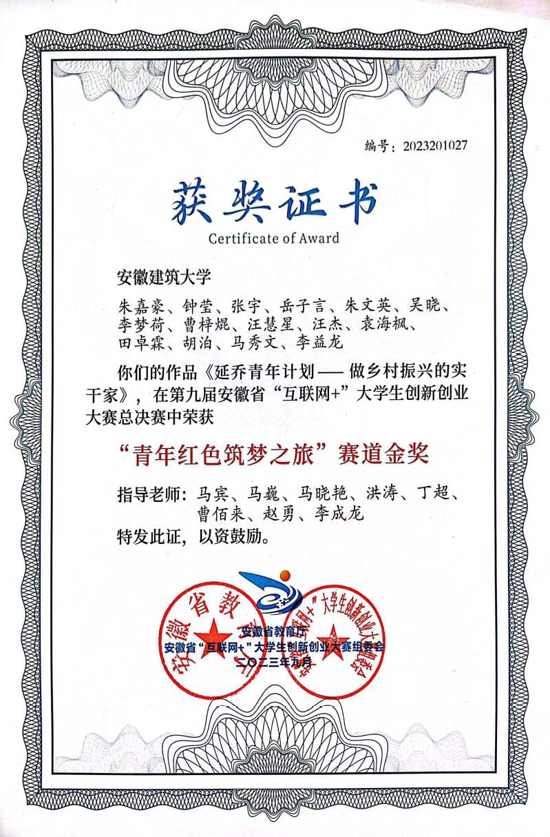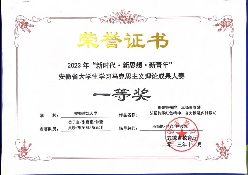 在党的二十大全面推进乡村振兴新部署的方向引导下,在新时代“五育并举”人才培养需求下,延乔青年们积极参与创新创业,在各类赛事中勇创佳绩。从校赛到省赛,他们不断挑战自我、突破自我,从项目核心到计划书、从视频拍摄到路演答辩,延乔青年们坚持打磨、不断凝练,不放过任何一个细节,不忽略任何一个漏洞,他们团结一致、胆大心细;他们吃苦耐劳、知行合一。一个个夜晚的挑灯夜战,一次次会议的头脑风暴,一版版演讲稿的修改完善,一份份调研报告的推翻重来,每一场蜕变都是为了更加完美,每一次坚持都离成功又进了一步。暑期烈日下,青年们迎头奔走,晒得满脸通红;每日7小时电脑前的工作,青年们不惧辛苦,协调时间安排。百般磨练,努力得到了回报,校团委、创新创业学院组织下,在指导老师团队的悉心指导与全程陪伴下,延乔青年团队创作的作品《延乔青年计划——做乡村振兴的实干家》,在第九届安徽省“互联网+”大学生创新创业大赛总决赛中荣获“青年红色筑梦之旅”赛道金奖;《重走鄂豫皖,再扬青春梦——弘扬传承红色精神,奋力推进乡村振兴》,荣获第十八届“挑战杯”全国大学生课外学术科技作品竞赛红色专项活动安徽省省级一等奖。同时团队视频作品也在2023年“新时代·新思想·新青年”安徽省大学生学习马克思主义理论成果大赛中,荣获安徽省级一等奖。