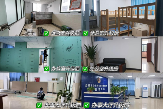 为确保警务站升级工作高效落地,保卫处通过专项请示与报告,详细阐述了一级站建设的战略意义和紧迫需求,学校高度重视,相关部门给予全方位支持。警务站深入学生生活核心区,落户学生公寓7-8号楼,确保师生能够报警求助更便捷化,同时便于警方快速抵达处置;严格对标全省高校一级警务站建设标准,科学规划设置前台接待区、办公区、警民谈话室、配备智能会议平板的情报研判中心以及休息室,为提供高效、专业的警务服务奠定了坚实的硬件基础;智慧化建设情报研判中心,配备专门智能会议平板,直连公安专网与校内实时监控网络,为突发事件的高效研判与指挥调度提供强大技术支撑。合肥市公安局特别配备的身份证补办自助机及驾照体检自助机,将便捷的公安政务服务延伸至师生身边。此外,根据经开区分局需求,学校保卫处为驻站民辅警提供战时就餐服务,为校园警务安全防线筑牢保障之基。