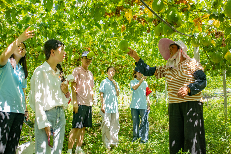 乡村振兴,既要产业兴旺,也要思想引领与广泛传播。实践团成员不仅是产业发展的助力者,更是乡村故事的记录者与传播者。团队成员深入瓜蒌藤蔓缠绕的田间、果实累累的葡萄架下以及蔬菜大棚基地,用镜头捕捉乡村产业发展的生动场景,精心拍摄制作相关视频。他们结合实地所见所感,以鲜活的画面和生动的解说,展现党建引领下乡村产业的蓬勃发展态势,阐释乡村振兴战略在基层的生动实践与丰硕成果。