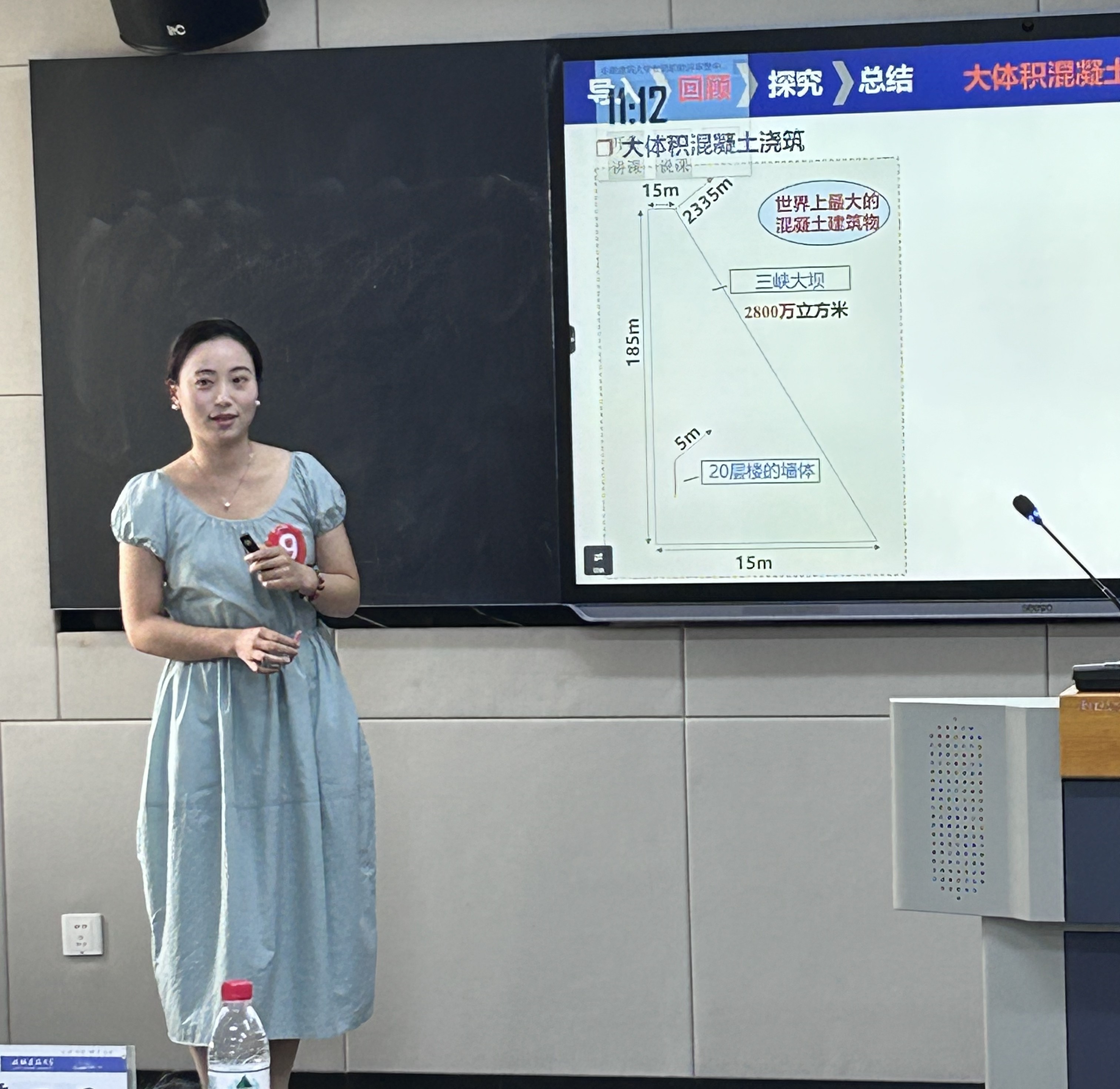 在讲述“重力坝材料及构造”时,她介绍三峡工程百年建设历史,让学生理解“兴水利、除水害”的国家战略传承;讲解三峡大坝“智能温控系统”,将工程案例转化为“科学精神与责任担当”的生动教材;将规范条款中的技术要求转化为“1毫米误差可能危及下游百户居民”的责任认知,自然融入“安全至上”的职业伦理教育;计算1立方米坝体失稳可能造成的生命财产损失,将抽象的“责任意识”转化为可量化的安全认知。同时,用三峡移民131万份安置档案中的手写家书诠释“舍小家为大家”的家国情怀,达成价值引领的具象渗透。