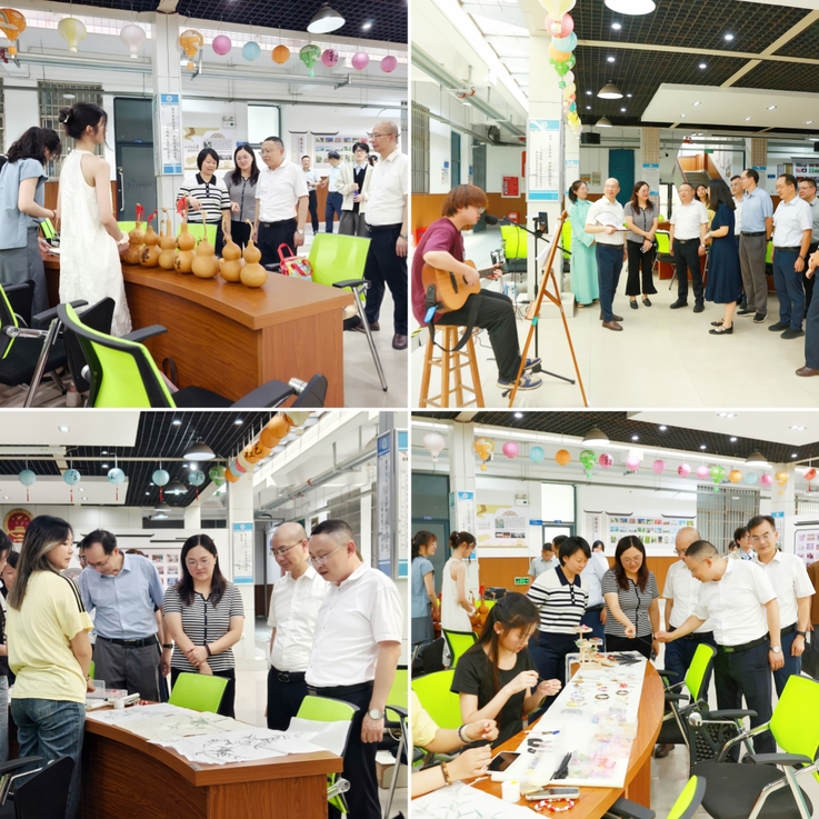 高跃峰一行走访建树楼一楼学生社团活动中心,看了朝含国学制作的发簪工艺品、书法作品、非物质文化遗产——葫芦烙画,聆听了传韵戏曲美育工作室和嘻哈研究社同学们的精彩演唱。他认真听取社团负责人对社团特色和活动开展情况的介绍,对各社团丰富校园文化、提升校园文化底蕴,给予了高度认可与充分肯定。