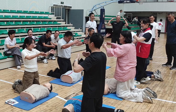 本网讯  深入贯彻落实“生命至上、健康第一”理念,近一步加强校园急救体系建设,提升师生应急自救互救能力,筑牢校园安全防线。近日,我校后勤管理处、学生处、体育教学部及保卫处联合安徽省红十字会开展了师生应急救护专项培训,120余名教职工和4600余名新生参加此次培训。