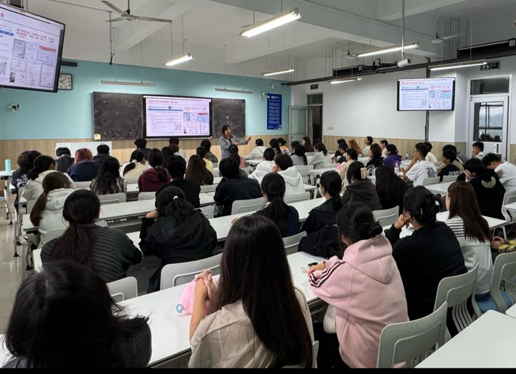 随后,朱素媛具体介绍了保障双创教育落地的配套措施,并对学院开设的“创新工程与创业管理”微专业进行了说明。本次“双创教育第一课”活动内容丰富、氛围热烈,不仅让2025级新生深入了解了学院创新创业教育的情况,更在他们心中播下了敢于突破、勇于实践的种子。